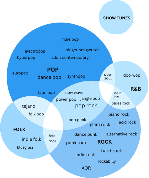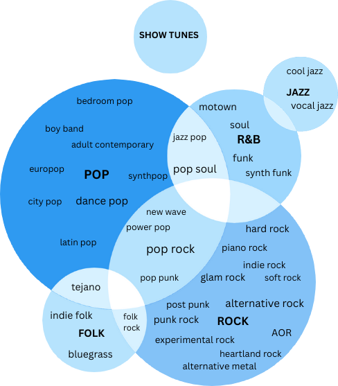 below is a venn diagram of all of the genres i listed for this year's songs